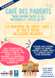 Pour en parler ensemble, nous vous invitons à un Café des Parents mercredi 30 juillet, de 14h à 15h30, au Centre Mozaïka.