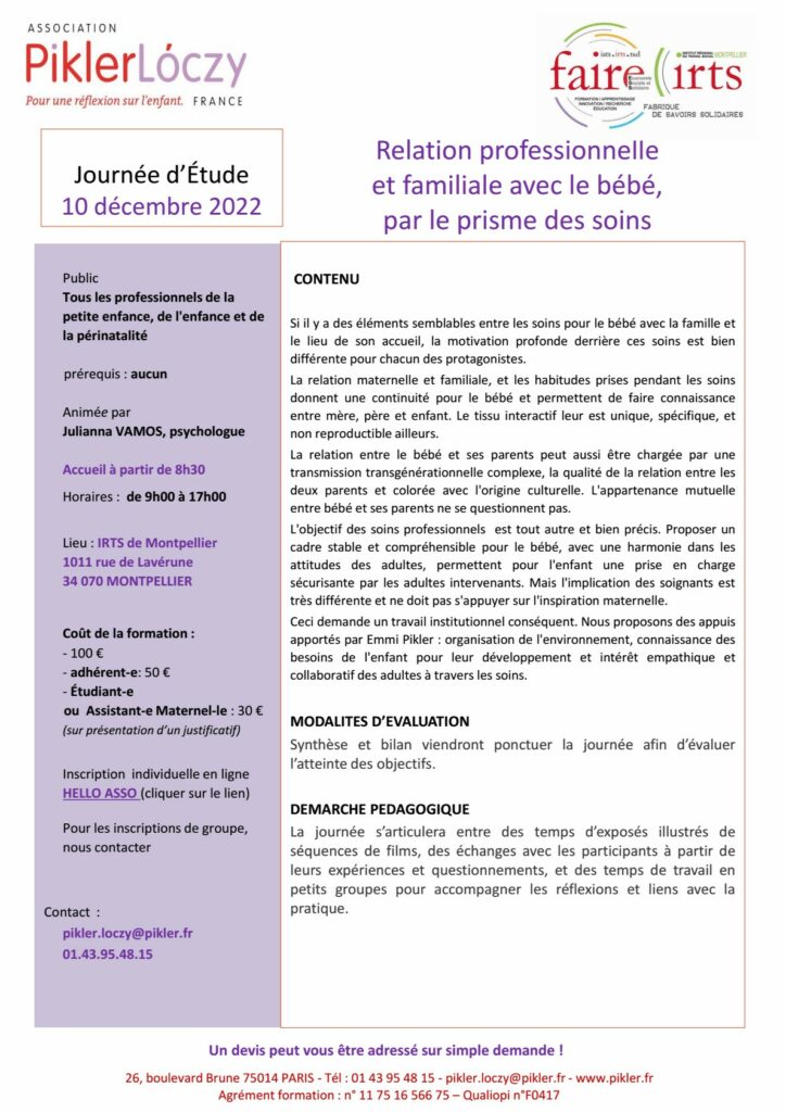 Journée d’étude : Relation professionnelle et familiale avec le bébé, par le prisme des soins